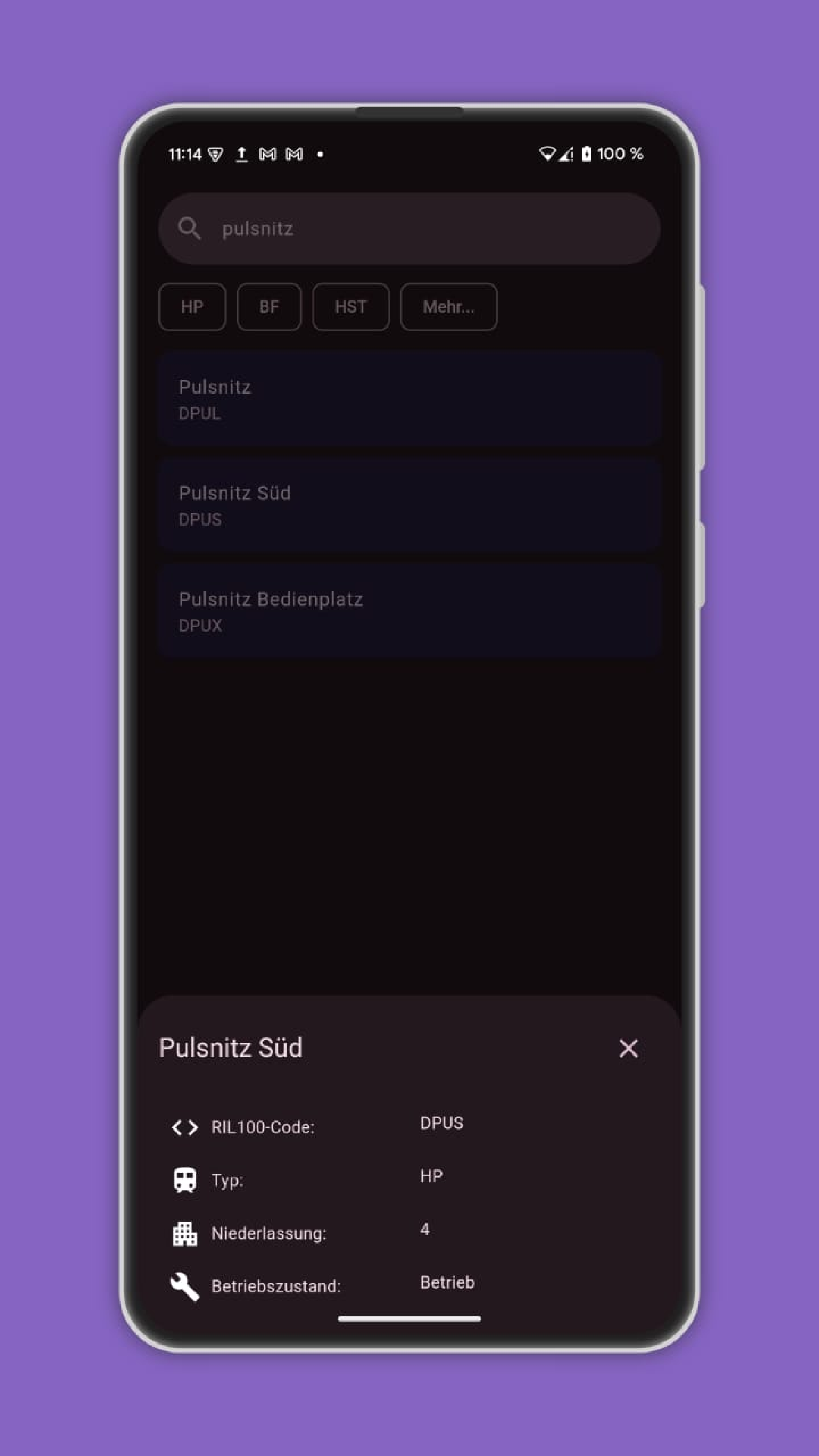 Mit dieser simplen App kann nach RIL100-Codes oder Bahnhofsnamen von Betriebsstellen gesucht werden, welche im Verzeichnis der Betriebsstellen (Ril100) der Deutschen Bahn AG gelistet sind.